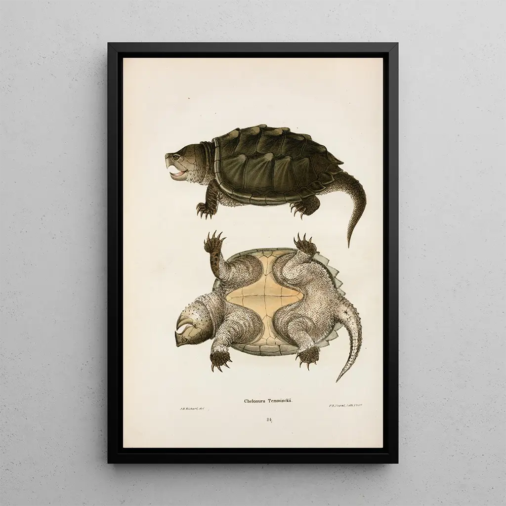 The art print of the Temminck's Snake-necked Turtle makes an ideal decorative addition for various spaces, whether in a living room, office, or bedroom. Its realistic and captivating representation adds a touch of elegance and curiosity, while sparking interest in biodiversity. The quality of the print guarantees remarkable fidelity to the colors and details of the original artwork, offering undeniable aesthetic appeal. By incorporating this canvas into your decor, you create an inspiring environment where art and nature meet harmoniously, enriching your living space.