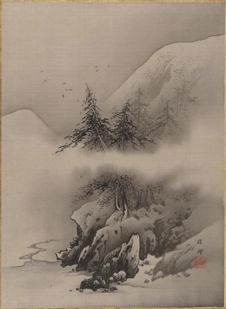 Hashimoto Gahō, an emblematic figure of 19th-century Japanese art, mastered the art of blending tradition and innovation. Influenced by the great masters of ukiyo-e, he developed a unique style that combines precision and poetry. Gahō dedicated his career to depicting landscapes and scenes of daily life, capturing the essence of his era while preserving ancient techniques. His work, "Snowy Landscape," demonstrates his skill in evoking emotions through delicate compositions, making him an essential artist of his time.