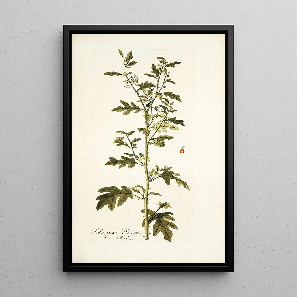 The art print of Solanum milleri is an ideal decorative piece to enhance the ambiance of your living room, office, or bedroom. Its print quality and fidelity to the original details make it an attractive choice for art and botany enthusiasts. This canvas brings a touch of nature to your interior, while sparking conversations about art and science. With its undeniable aesthetic appeal, this art print will harmoniously integrate into various decorating styles, adding a note of elegance and curiosity to your living space.