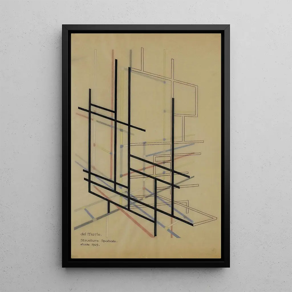 La toile art print Structure spatiale de Félix Del Marle nous plonge dans un univers où les formes et les couleurs se rencontrent pour créer une illusion de profondeur et de mouvement. Les lignes géométriques s'entrelacent, formant une structure complexe qui semble défier les lois de la perspective. Les couleurs, à la fois vives et nuancées, ajoutent une dimension supplémentaire à cette œuvre, évoquant des sensations de légèreté et de fluidité. Cette œuvre est une véritable ode à l'espace, où chaque élément contribue à une harmonie visuelle captivante.