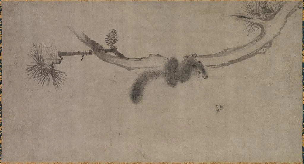 Squirrel on a pine branch: an animal scene imbued with poetry