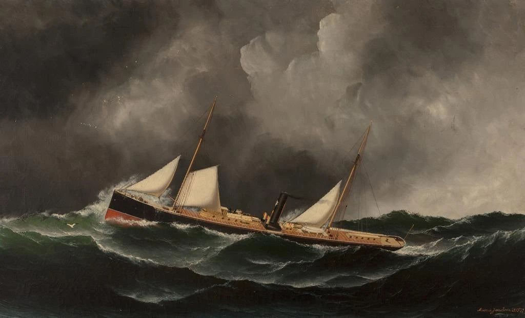 Antonio Jacobsen, born in 1850 in Denmark, is recognized as one of the greatest marine painters of his time. Based in the United States, he captured the essence of steamships and sailing vessels, influenced by the Romantic movement and realism. His works, often commissioned by shipping companies, reflect a growing interest in commercial navigation and maritime transport at the end of the 19th century. Jacobsen immortalized the golden age of navigation, and his distinctive style continues to inspire maritime art enthusiasts today, making him an iconic figure in this field.
