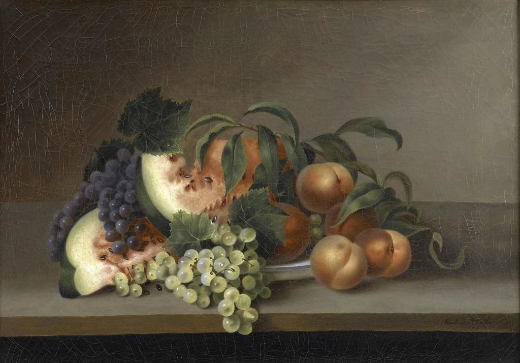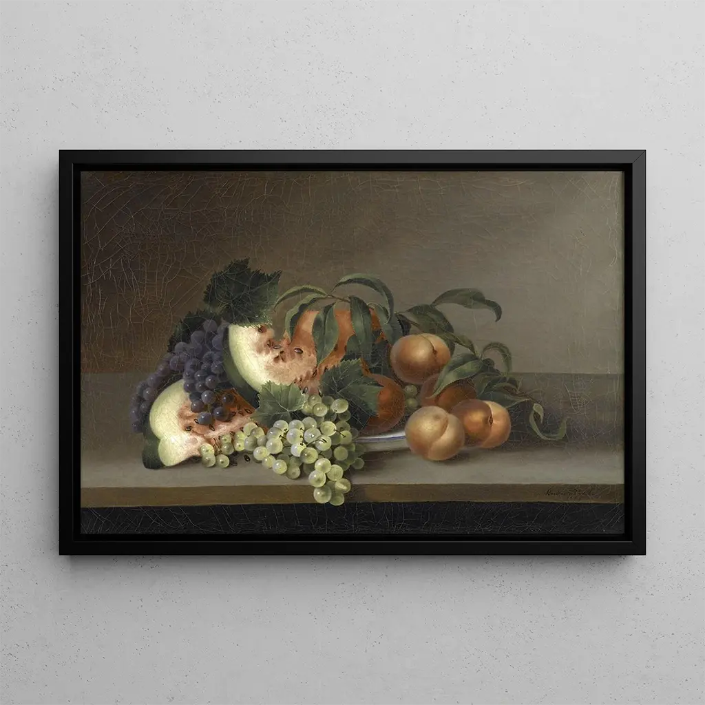 The art print Nature morte with watermelon by Rubens Peale is a vibrant piece that celebrates the richness of colors and the diversity of shapes. This canvas highlights a harmonious composition where the watermelon, the centerpiece, immediately draws the eye with its shades of red and bright green. The other fruits, carefully arranged, add a touch of freshness and vitality to the overall scene. The oil painting technique, mastered by Peale, captures textures with striking precision, creating an atmosphere that is both realistic and poetic, where each element seems almost tangible.