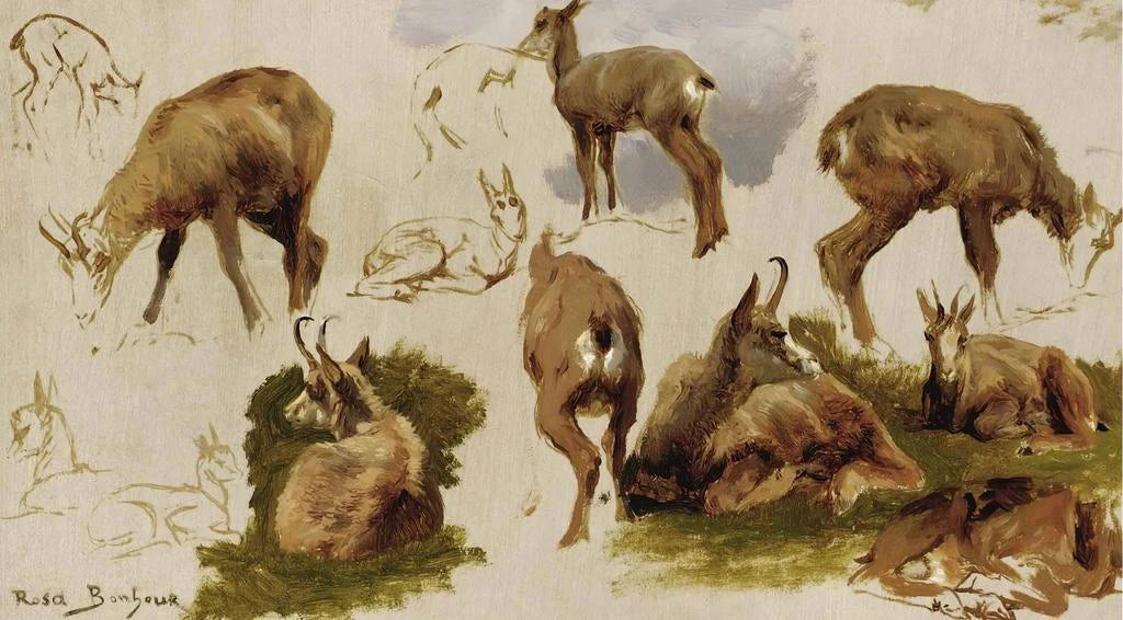 Studies of a chamois: a encounter with wildlife "Studies of a chamois" by Rosa Bonheur is a work that captures the grace and majesty of this emblematic mountain animal. Through precise brushstrokes and meticulous attention to detail, Bonheur manages to convey the vitality and energy of the chamois. The shades of brown and beige, combined with touches of green, evoke the natural landscape in which this animal lives. The atmosphere of this canvas is both realistic and poetic, offering a fascinating glimpse into wildlife and its habitat. Rosa Bonheur: pioneer of animal painting Rosa Bonheur, a 19th-century artist, is recognized as one of the greatest animal painters of her time. Her passion for animals and nature led her to study her subjects thoroughly, allowing her to create works of great authenticity. Influenced by realism and the naturalist movement, she captured the raw beauty of wild life. Bonheur also broke gender barriers by establishing herself in an art world dominated by men, leaving a lasting legacy that continues to inspire contemporary artists. A decorative acquisition with multiple advantages The art print of the painting "Studies of a chamois" is a perfect addition to your interior decor, whether in an office, living room, or bedroom. Its printing quality ensures remarkable fidelity to the details and colors of the original work, bringing a touch of nature and serenity to your space. With its aesthetic appeal, this canvas becomes a focal point that sparks admiration and curiosity. By choosing this piece, you invite the beauty of wildlife into your daily life, while enriching your environment in an elegant and inspiring way.