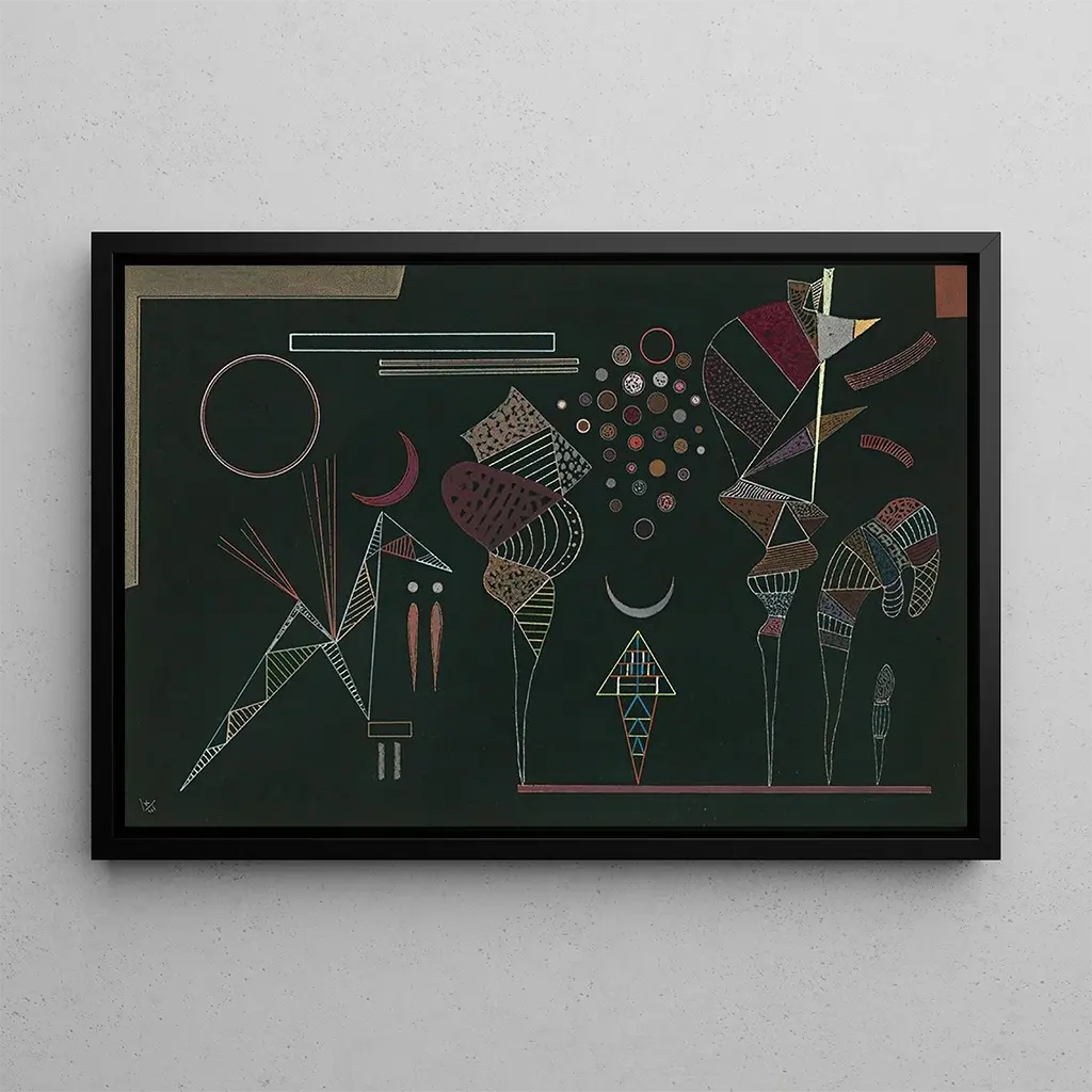 This art print of "Study for Reduced Contrasts" is an ideal choice to enhance your interior, whether in a living room, office, or bedroom. Its modern and colorful aesthetic adds a touch of energy and creativity to any space. The quality of the print guarantees remarkable fidelity to the details of the original work, allowing you to fully enjoy Kandinsky's visual richness. By incorporating this piece into your decor, you not only invite art into your daily life but also create an inspiring and stimulating environment.
