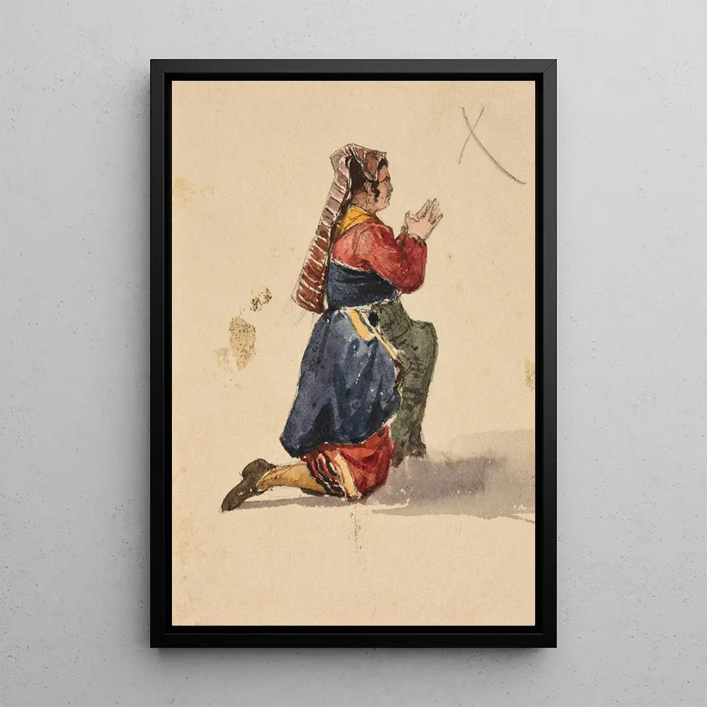 Study of a kneeling woman: a capture of feminine grace The artwork "Study of a kneeling woman" by Jacques-Raymond Brascassat depicts a feminine figure in a pose full of softness and serenity. The delicate curves and meticulous details of the dress highlight the beauty and fragility of femininity. The color palette chosen by the artist, with warm and soothing tones, creates an intimate and contemplative atmosphere. This art print invites reflection on the feminine condition, while celebrating the grace and elegance of its subject, capturing a moment of vulnerability and strength. Jacques-Raymond Brascassat: a witness to 19th-century customs Jacques-Raymond Brascassat, a 19th-century painter, is recognized for his realistic approach and interest in scenes of everyday life. His works, often inspired by traditional and popular costumes, reflect an era when art served as a mirror to customs and traditions. Brascassat was able to absorb influences of his time, notably Romanticism and Realism, to bring to life compositions rich in emotion. His work on the representation of women demonstrates a particular sensitivity, leaving a mark in art history. A decorative reproduction with multiple assets The art print of "Study of a kneeling woman" is an ideal decorative choice to enhance your interior. Whether in a living room, office, or bedroom, this print adds a touch of elegance and refinement. Its printing quality ensures remarkable fidelity to the details of the original artwork, allowing appreciation of each nuance and texture. By integrating this piece into your decor, you offer your space a warm and inspiring atmosphere, while paying tribute to the timeless beauty of femininity.