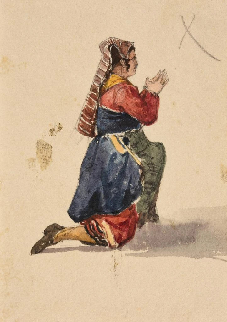 Art print | Study of a kneeling woman - Jacques-Raymond Brascassat