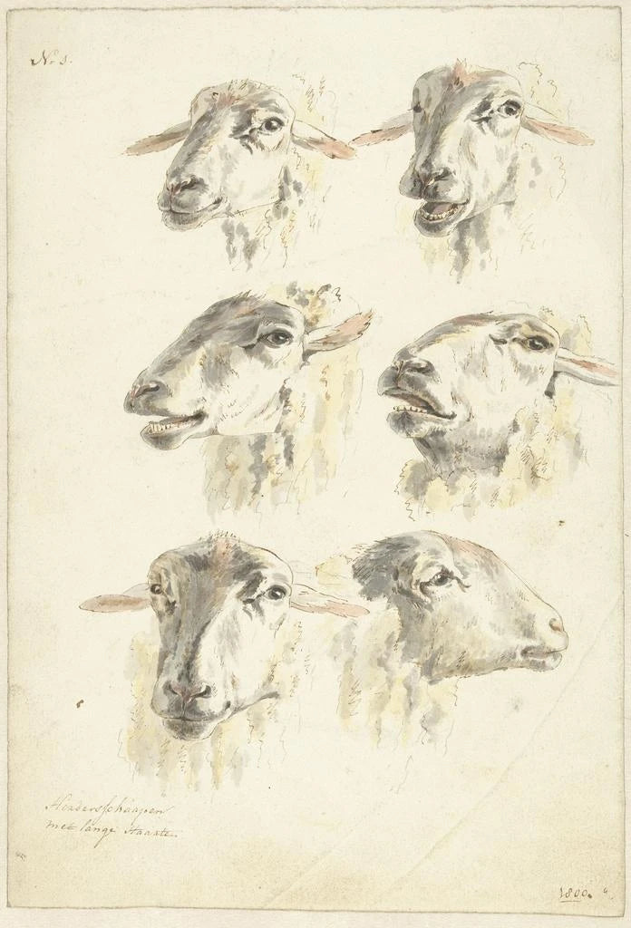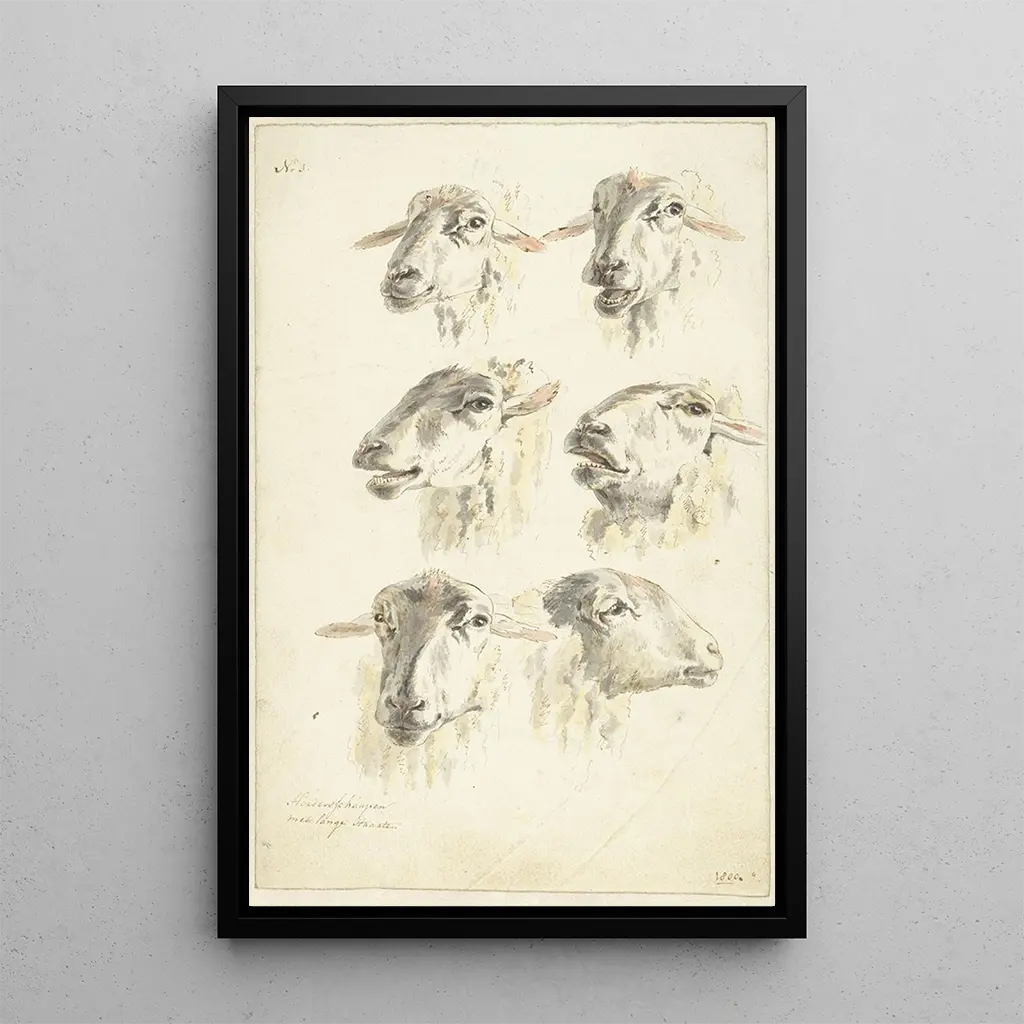 Painting Study Sheet with Six Sheep Heads - Franciscus Andreas Milatz | Art print