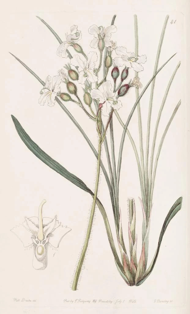 Sydenham Edwards, active in the early 19th century, left a mark on the history of botanical illustration with his unique approach. Raised in a context where science and art intertwined, he mastered capturing the essence of plants with remarkable precision. His style, combining scientific rigor and artistic sensitivity, made him an iconic figure in the field. "Stylewort velu" perfectly illustrates his talent, demonstrating his commitment to representing flora with particular attention to detail and aesthetics.
