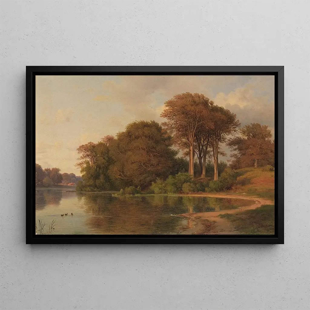 The art print of Summer Landscape with Lake Shore by Louis Gurlitt evokes the gentle days of sunshine, where nature reveals itself in all its splendor. The vibrant shades of blue and green, combined with touches of golden light, create a lively and joyful atmosphere. Gurlitt's technique, blending impressionism and realism, allows you to feel the gentle breeze and the whisper of the water. Each element of the painting, from majestic trees to reflections in the lake, transports us to a moment of summer serenity, inviting contemplation.