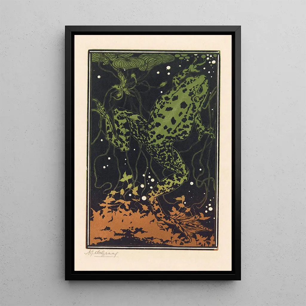 Frog swimming: an aquatic dance full of grace In this captivating artwork, the swimming frog unfolds with natural elegance, evoking the lightness and fluidity of its movement in the water. Shades of green and blue blend harmoniously, creating a soothing atmosphere that invites contemplation. The painting technique used by Julie de Graag highlights the delicate details of the animal's skin, while capturing the light reflecting on the water's surface. This art print of "Frog swimming" transports the viewer into an aquatic universe where the beauty of nature is expressed with simplicity and poetry. Julie de Graag: a pioneer of animal art Julie de Graag, a Dutch artist of the early 20th century, is renowned for her ability to capture wildlife with remarkable precision. Influenced by the Impressionist movement, she mastered combining realistic technique with artistic sensitivity, placing nature at the heart of her work. Her work stands out for its particular attention to detail and a vibrant color palette that pays homage to the beauty of the animal world. By exploring the fauna of her time, de Graag contributed to the emergence of a new appreciation for animal art, making her an important figure of her era. A decorative piece with multiple assets The art print of "Frog swimming" is an ideal decorative piece to bring a touch of nature into your interior. Whether in a living room, office, or bedroom, this canvas draws the eye and sparks conversations. Its printing quality guarantees fidelity to the colors and details of the original artwork, while offering undeniable aesthetic appeal. By integrating this art print into your decor, you create a calming and inspiring space, where the beauty of nature is invited into everyday life.