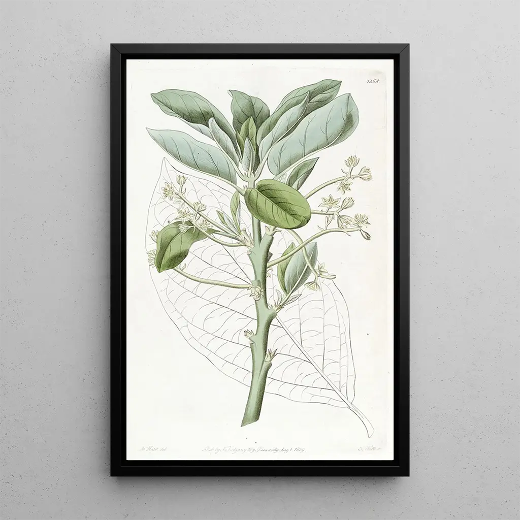 The artwork "The avocado tree" by Sydenham Edwards immerses us in a rich and vibrant botanical universe. This art print highlights the beauty of green leaves and the elegance of the fruits, capturing the light in a way that evokes the warmth of the tropics. The meticulous details of each leaf and the texture of the fruit are rendered with remarkable precision, showcasing the artist's skill. The overall atmosphere of the canvas is both soothing and inspiring, inviting the viewer to appreciate the magnificence of nature.