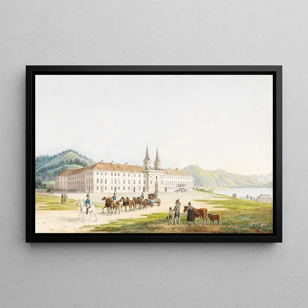 Château de Tegernsee: a symphony of nature and architecture The art print "Château de Tegernsee" transports the viewer to an enchanting landscape where the majesty of architecture blends with the surrounding natural beauty. The soft shades of green and blue evoke a peaceful atmosphere, while the intricate details of the castle, with its sloping roofs and decorated windows, capture the eye. The artist's technique, skillfully combining watercolor and oil, creates a striking depth, bringing this iconic place to life. Each brushstroke seems to tell a story, inviting contemplation and escape in this idyllic setting. Heinrich Adam: a witness to a romantic era Heinrich Adam, active in the 19th century, is renowned for his romantic landscapes that celebrate the beauty of natural and architectural sites. Influenced by the Romantic movement, he captured the essence of the places he painted, emphasizing the harmony between man and nature. His works, often inspired by travels across Europe, reveal a particular sensitivity to light and atmosphere. Adam left a lasting legacy, influencing many contemporary artists who sought to immortalize the splendor of European landscapes. A decorative acquisition with multiple assets The art print of "Château de Tegernsee" is a decorative piece that will enhance any interior, whether in a living room, office, or bedroom. Its printing quality guarantees remarkable fidelity to the colors and details of the original work, offering undeniable aesthetic appeal. By incorporating this art print into your decor, you bring a touch of elegance and serenity, while evoking the history and culture of a bygone era. This piece is much more than simple decoration; it is an invitation to dream and escape into the heart of nature.