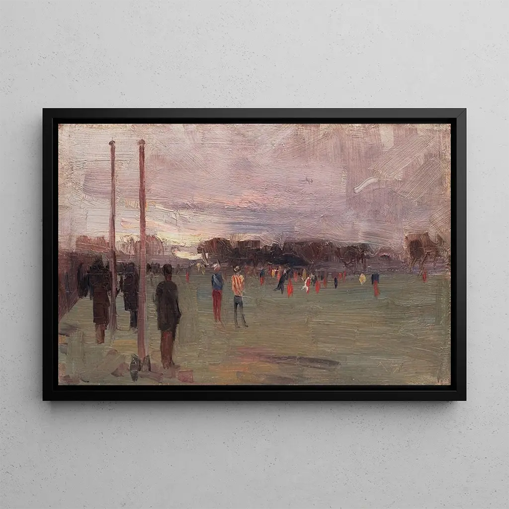 The National Game: A Celebration of Outdoor Life In "The National Game," Arthur Streeton captures the vibrant essence of a sunny day, where light plays on the faces of characters engaged in joyful activity. The vivid colors, ranging from lush greens to azure blues, evoke an atmosphere of friendliness and freedom. Streeton's impressionist technique, with its fluid and dynamic brushstrokes, brings this scene to life, allowing the viewer to feel the energy and enthusiasm emanating from this artwork. Every detail, from the cast shadows to the reflections on the ground, contributes to creating a total immersion in this fleeting moment. Arthur Streeton: a pillar of Australian Impressionism Arthur Streeton, an iconic figure of Australian Impressionism, mastered translating the beauty of landscapes and everyday scenes from his country. Born in 1867, he was influenced by European masters while developing a unique style that celebrates light and color. Streeton played a crucial role in the "Heidelberg School" movement, which sought to capture the essence of Australia through vibrant and expressive works. His commitment to nature and talent for depicting authentic moments of life make him an essential artist of his era, whose legacy endures to this day. A decorative acquisition with multiple assets The art print of "The National Game" is a decorative piece that will enhance any space, whether a living room, office, or bedroom. Its reproduction quality guarantees remarkable fidelity to the colors and details of the original artwork, adding a touch of elegance and dynamism to your interior. By choosing this piece, you opt for a work that not only beautifies your decor but also evokes feelings of joy and conviviality. The aesthetic appeal of this canvas makes it an ideal choice for those wishing to add a note of freshness and optimism to their environment.