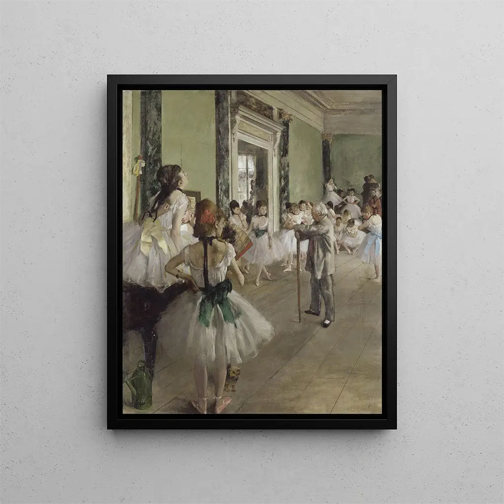 La classe de ballet d'Edgar Degas est une œuvre emblématique qui capture l'essence même de la danse à travers le prisme de l'impressionnisme. Ce tableau, peint à la fin du XIXe siècle, nous plonge dans l'univers fascinant des ballerines, mêlant grâce et rigueur. La scène se déroule dans une salle de danse, où des jeunes filles, vêtues de tutus, s'exercent sous le regard attentif de leur professeur. Degas, en maître de l'observation, parvient à immortaliser un instant fugace, révélant non seulement la beauté du mouvement, mais aussi l'intimité d'un moment de travail et de discipline. La lumière douce qui filtre à travers les fenêtres crée une atmosphère presque éthérée, invitant le spectateur à s'immerger dans ce monde délicat et exigeant.