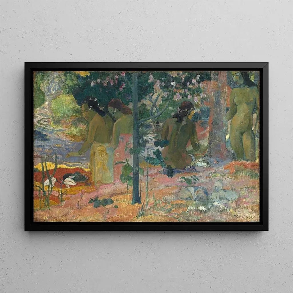 An emblematic artist of the Post-Impressionist movement, Paul Gauguin established himself with his bold style and quest for deeper artistic expression. Born in 1848, he was influenced by artists such as Vincent van Gogh and Camille Pissarro, but quickly developed his own vision. His Tahitian period, during which he sought to escape Western civilization, marked a turning point in his work, allowing him to explore themes related to nature, spirituality, and culture. The Bathers are a perfect example, illustrating his desire to capture the essence of simple, authentic life.