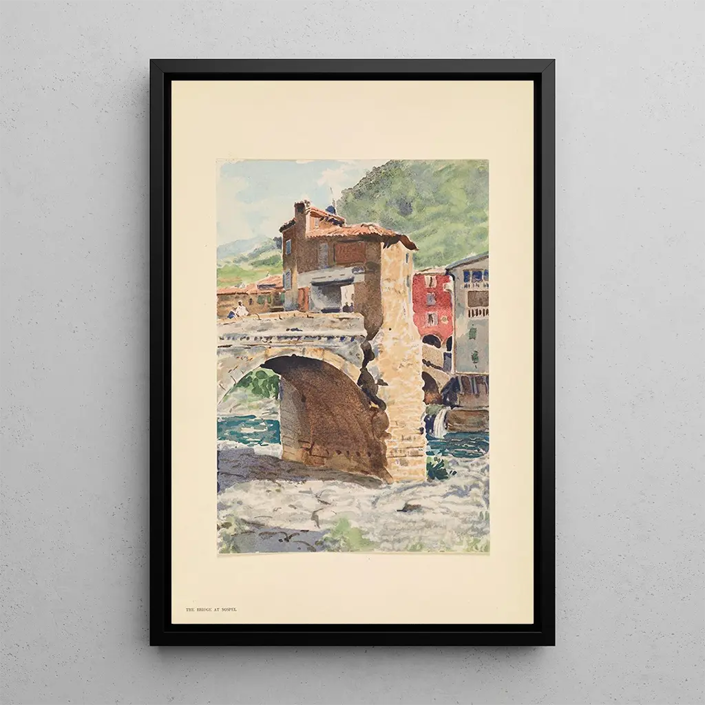 Painting Le pont à Sospel - Pierre Vignal | Art print