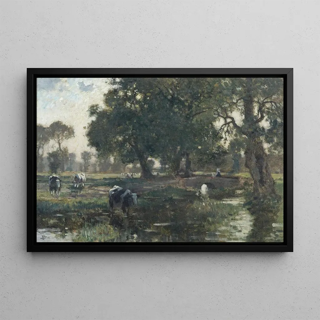 "The Stream": a painting of serenity and nature Bertram Priestman's "The Stream" is a piece that invites contemplation. In this art print, light plays with the reflections on the water, while majestic trees gently lean towards the stream. The colors, soft and soothing, evoke a perfect harmony between nature and man. Priestman employs an impressionist painting technique, capturing the very essence of the landscape with delicate brushstrokes. The atmosphere conveyed by this artwork is that of a suspended moment, where time seems to stand still, allowing the viewer to escape into a world of tranquility. Bertram Priestman: a master of British landscape art Bertram Priestman, active in the early 20th century, is renowned for his enchanting landscapes that reflect a deep connection with nature. Influenced by Impressionism, he developed a unique style, combining sensitivity to colors with mastery of light. His works, often inspired by British scenery, testify to an era when art turned to nature as a source of inspiration. Priestman was also a member of the Royal Academy, highlighting the significance of his work within the British artistic landscape of his time. His legacy endures through his art prints, which continue to inspire art enthusiasts. A decorative piece with multiple virtues The art print of "The Stream" is a decorative item that harmoniously fits into various spaces, whether a living room, office, or bedroom. Its print quality and fidelity to the original work make it an ideal choice for those wishing to bring a touch of nature into their interior. The aesthetic appeal of this art print lies in its ability to evoke peace and serenity, transforming any space into a calming refuge. By choosing this reproduction, you opt for a piece that not only enhances your decor but also nourishes your soul.