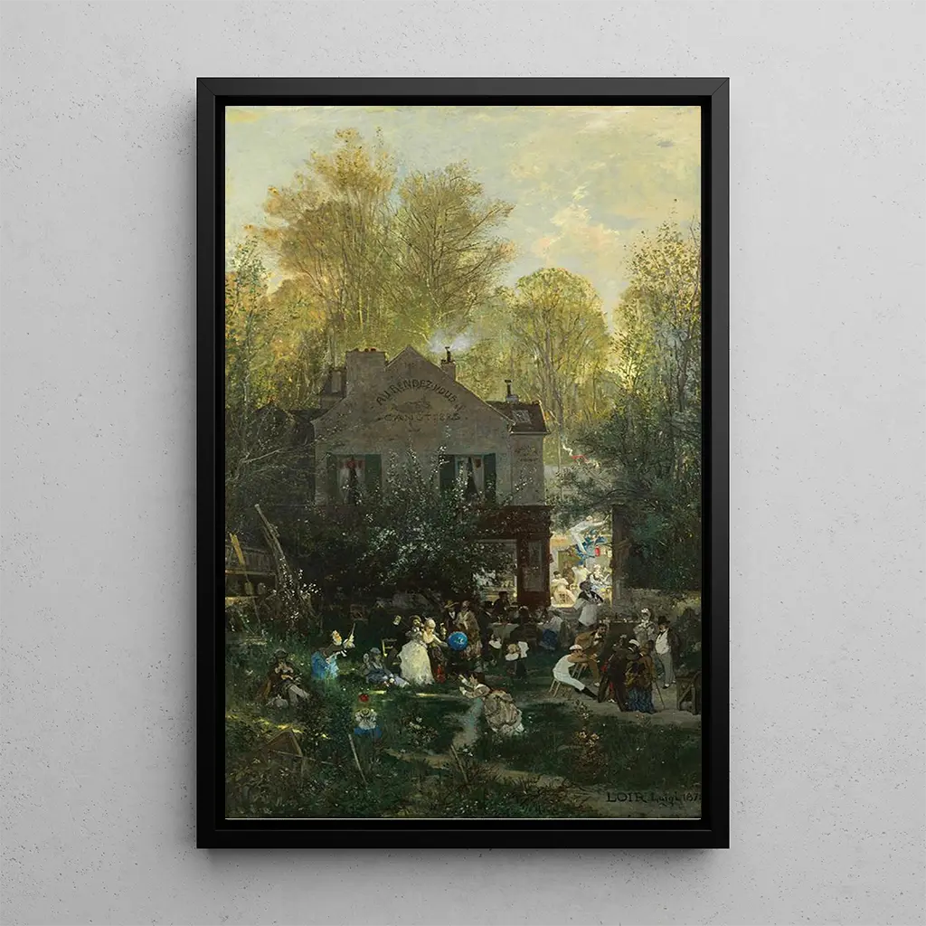 At the rendezvous of the canotiers: a lively scene by the water In this art print of At the rendezvous of the canotiers, Luigi Loir captures the bustling energy of a sunny day on the Seine. The canotiers, dressed in their summer costumes, mingle with a joyful crowd, while the reflections of boats shimmer in the water under the sunlight. The vibrant color palette, dominated by shades of blue and yellow, creates a light and festive atmosphere. Loir's technique, blending watercolor and oil, brings this scene to life, inviting the viewer to feel the warmth of summer and the lively atmosphere of the Parisian banks. Luigi Loir: a witness of the Belle Époque Luigi Loir, a French painter of the 19th century, is renowned for his vibrant depictions of Parisian life. Active during the Belle Époque, he captured the spirit of his time through his works. Influenced by Impressionism, Loir developed a unique style, combining realism and touches of light, which allowed him to stand out among his contemporaries. His paintings, such as At the rendezvous of the canotiers, testify to an era when Paris was at its peak, attracting artists and intellectuals from around the world. His work is a precious legacy that continues to inspire and delight. A decorative acquisition with multiple advantages This art print of At the rendezvous of the canotiers is ideal for enhancing your interior, whether in a living room, office, or bedroom. Its print quality and fidelity to the original details make it a perfect choice for art enthusiasts. By adding this artwork to your decor, you bring a touch of elegance and history to your space. The aesthetic appeal of this piece, with its vibrant colors and lively atmosphere, will captivate your guests and create a warm and welcoming ambiance.
