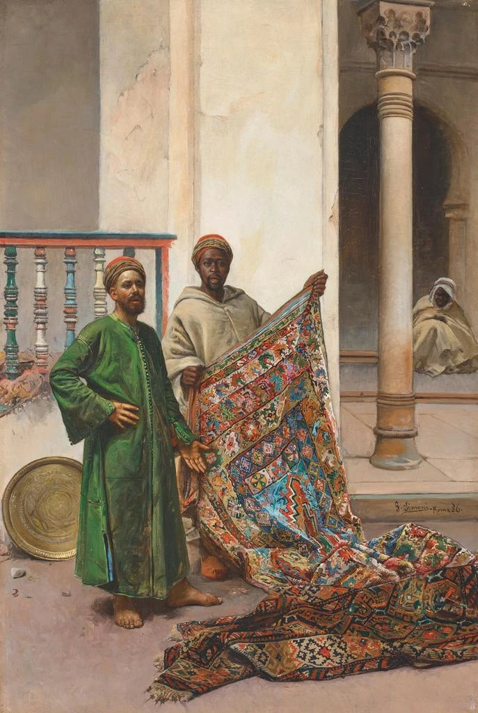 Painting The Carpet Merchant - Gustavo Simoni | Art print