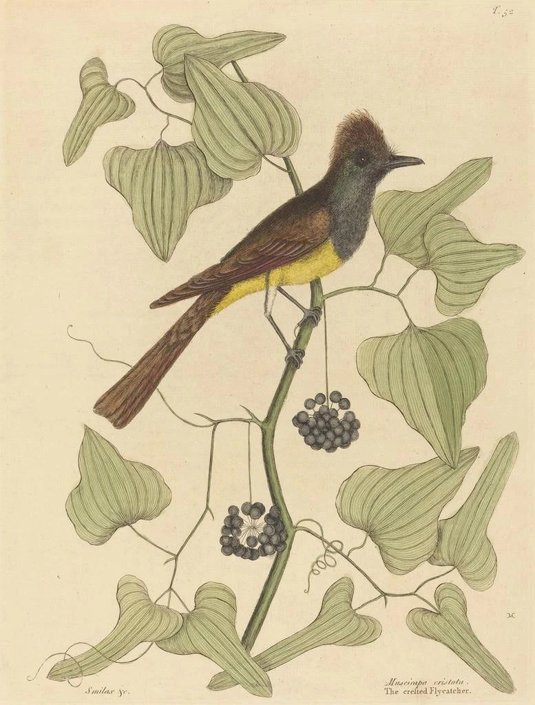 The crested flycatcher Muscicapa cristata - Mark Catesby