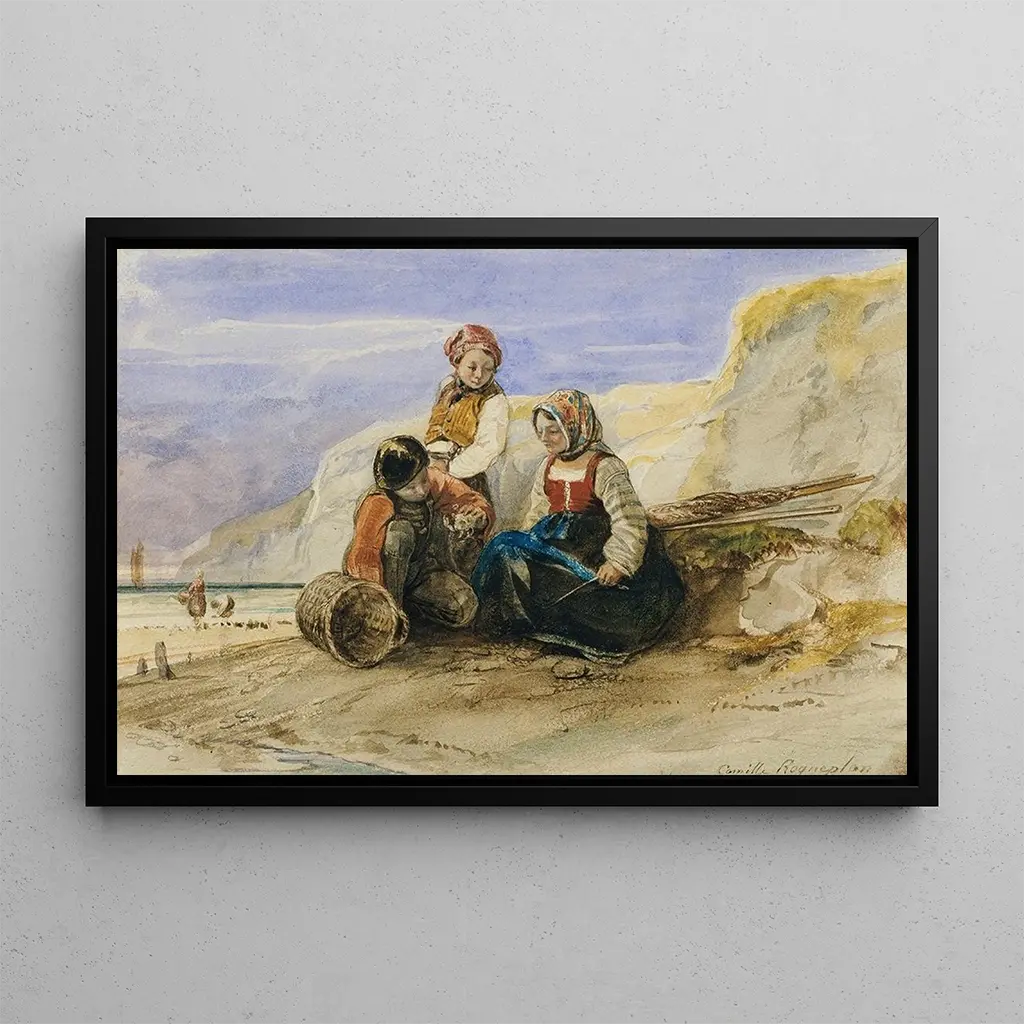 In Children of the Fisherman, Camille Joseph Étienne Roqueplan immerses us in a tender everyday scene. The children, joyful and carefree, are busy around a fisherman, their laughter ringing out like a gentle melody. The palette of bright colors, dominated by shades of blue and green, evokes the freshness of nature and the vitality of childhood. Roqueplan's technique, blending realism and impressionism, gives this canvas a dynamic and warm atmosphere, capturing the very essence of joie de vivre.