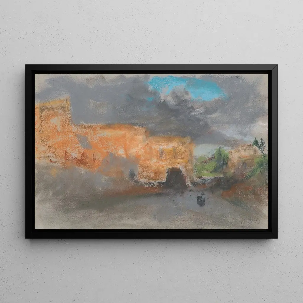 The artwork "Rome's Colosseum" by Hercules Brabazon Brabazon transports us to the heart of Antiquity, where the majestic architecture of the famous Roman amphitheater rises brilliantly. The warm terracotta hues and delicate shadows create an atmosphere that is both vibrant and nostalgic. The artist's technique, blending watercolor and oil, gives this piece a lightness and depth that captivate the eye. The meticulous details of the arches and columns, bathed in golden light, evoke echoes of the spectacles that once took place there, inviting us to dream of a bygone era.