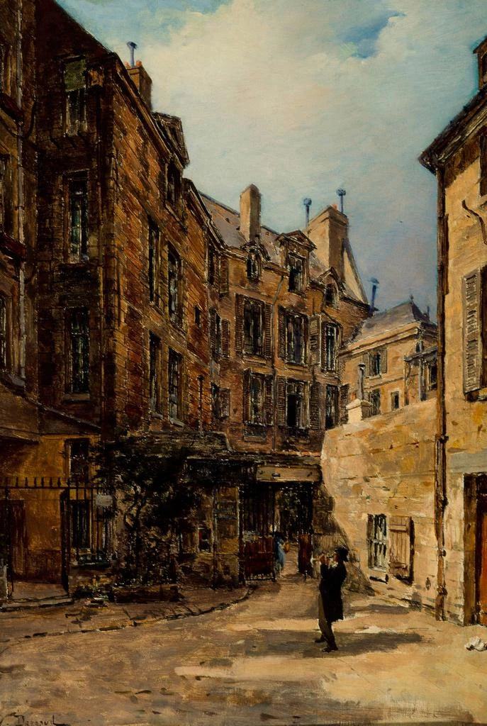 Paul-Joseph-Victor Dargaud, peintre français du XIXe siècle, est reconnu pour sa capacité à capturer l’essence de la vie quotidienne à Paris. Influencé par le mouvement réaliste, il s’efforce de représenter des scènes authentiques, loin des idéalisations romantiques. Dargaud a su s’imposer dans le milieu artistique de son époque, exposant ses œuvres au Salon de Paris. Son style, caractérisé par un souci du détail et une palette riche, témoigne d’une époque où l’urbanisation et les changements sociaux façonnaient la société française. La Cour de Rohan est l’un de ses exemples les plus emblématiques, illustrant son talent à immortaliser des moments fugaces.
