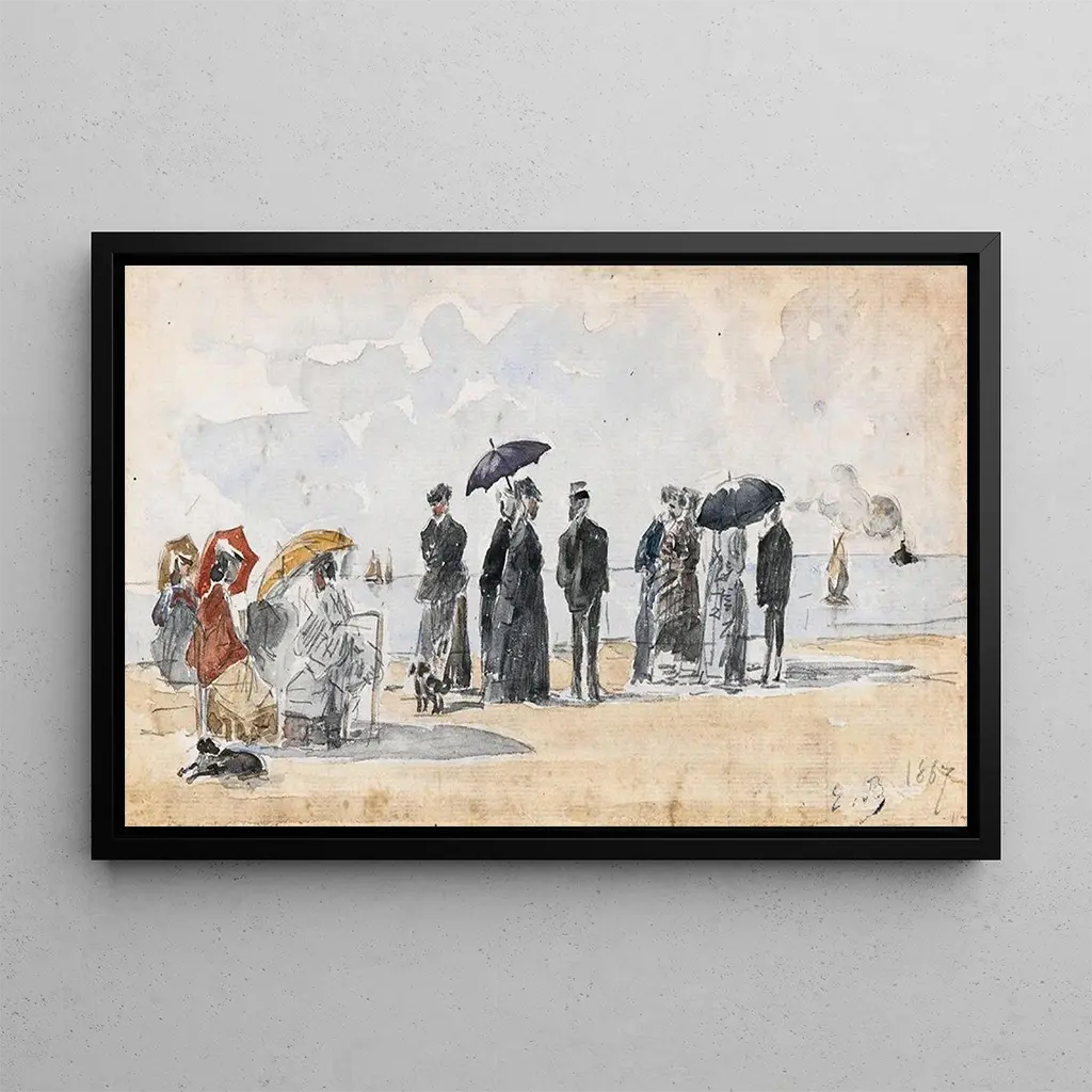 Les Crinolines : une danse de lumière et de couleurs Les art print d'Eugène Boudin capturent un moment fugace de la vie parisienne au XIXe siècle. Dans cette œuvre, les robes amples et légères des femmes se déploient sous la brise, créant une atmosphère de légèreté et de mouvement. La palette de couleurs, dominée par des teintes pastel, évoque la douceur d'un jour ensoleillé, tandis que les touches de lumière sur les tissus ajoutent une dimension presque éthérée. La technique impressionniste de Boudin, avec ses coups de pinceau rapides et fluides, permet de ressentir la vivacité de la scène, plongeant le spectateur dans une ambiance joyeuse et festive. Eugène Boudin : précurseur de l'impressionnisme Eugène Boudin est souvent considéré comme l'un des précurseurs de l'impressionnisme, ayant influencé des artistes tels que Claude Monet. Né en 1824 à Honfleur, il a commencé sa carrière en peignant des paysages marins avant de se tourner vers des scènes de la vie quotidienne. Son style se caractérise par une attention particulière à la lumière et à l'atmosphère, des éléments qui sont omniprésents dans Les Crinolines. Boudin a également été l'un des premiers artistes à peindre en plein air, une pratique qui deviendra emblématique du mouvement impressionniste. Son œuvre témoigne d'une époque où l'art commençait à s'affranchir des conventions académiques. Une acquisition décorative aux multiples atouts La reproduction de Les Crinolines est une pièce décorative idéale pour apporter une touche d'élégance à votre intérieur. Que ce soit dans un salon, un bureau ou une chambre, ce tableau évoque une atmosphère de raffinement et de légèreté. Sa qualité de reproduction garantit des couleurs fidèles et un rendu esthétique qui saura séduire les amateurs d'art. En choisissant cette toile, vous optez pour une œuvre qui non seulement embellit votre espace, mais qui raconte également une histoire, celle d'une époque où la mode et l'art se mêlaient harmonieusement.