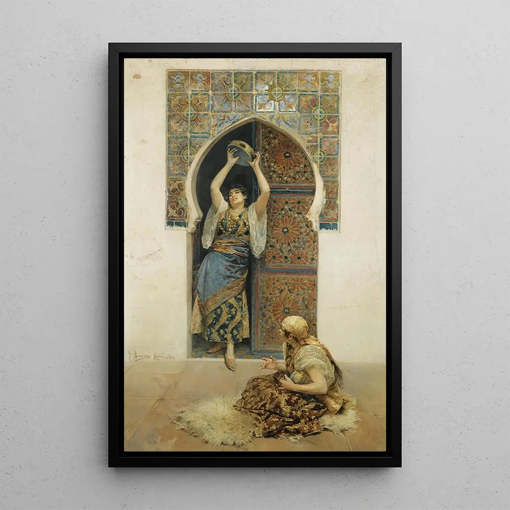 La Danse : une célébration de la vie et du mouvement Dans "La Danse", Gustavo Simoni capture l'essence même de la joie et de l'énergie humaine à travers une composition vibrante et dynamique. Les couleurs éclatantes, allant des rouges profonds aux jaunes lumineux, créent une atmosphère festive qui invite le spectateur à se laisser emporter par le rythme de la danse. La technique de Simoni, mêlant impressionnisme et réalisme, donne vie aux personnages qui semblent presque sortir de la toile. Chaque mouvement est figé dans le temps, mais l'œuvre respire une telle vitalité qu'on peut presque entendre la musique qui accompagne cette danse enjouée. Gustavo Simoni : un maître de la lumière et du mouvement Gustavo Simoni, artiste d'origine italienne, a su se faire un nom dans le monde de l'art au début du XXe siècle. Influencé par les grands maîtres de la peinture impressionniste, il a développé un style unique qui allie la fluidité des formes à une palette de couleurs audacieuses. Son œuvre s'inscrit dans une période où l'art cherchait à capturer des moments fugaces de la vie quotidienne, et "La Danse" en est un parfait exemple. Simoni a su transcender les simples représentations pour offrir une expérience visuelle qui résonne encore aujourd'hui, témoignant de l'importance de son héritage artistique. Une acquisition décorative aux multiples atouts Opter pour une art print de "La Danse" enrichit non seulement votre espace de vie, mais apporte également une touche d'élégance et de dynamisme. Que ce soit dans un salon, un bureau ou une chambre, ce tableau attire le regard et suscite des conversations. La qualité de la reproduction garantit une fidélité exceptionnelle aux détails et aux couleurs de l'œuvre originale, permettant de profiter pleinement de son attrait esthétique. En intégrant cette toile dans votre décoration, vous offrez à votre intérieur une ambiance chaleureuse et vivante, tout en célébrant l'art de Gustavo Simoni.