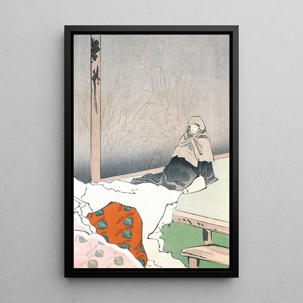 The dancer Hotoke Gozen at Giji, a captivating work by Kobayashi Kiyochika, evokes the timeless beauty of Japanese dance art. This art print highlights the dancer's graceful movements, captured in a moment of pure elegance. The vibrant colors and delicate patterns of her kimono create a striking contrast with the background, immediately drawing the eye. The printmaking technique used by Kiyochika gives the piece a unique texture, enriching the visual experience. Every detail, from the folds of the garment to facial expressions, demonstrates exceptional craftsmanship and a deep understanding of traditional Japanese art.