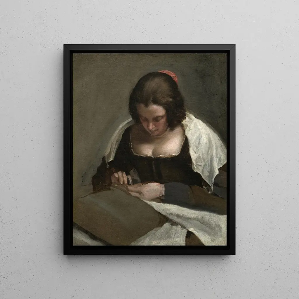 In the heart of 17th-century Spain, Diego Velázquez, an undisputed master of the baroque, invites us to delve into the intimacy of a moment frozen by his brush. "La Couturière," an iconic art print, reveals not only Velázquez's artistic talent but also a unique vision of everyday life. The artist, through his ability to capture ordinary moments, transports us into a universe where the simplicity of gestures becomes a source of wonder. This art print of "La Couturière" allows us to rediscover the finesse of a painting that, beneath its modest appearance, harbors an unparalleled narrative and emotional richness.