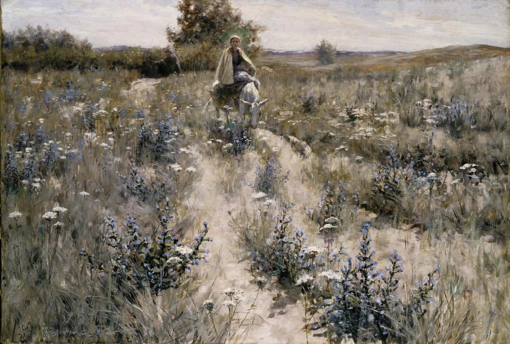 The Flight into Egypt: a spiritual journey to the heart of art "The Flight into Egypt" by George Hitchcock is a work that evokes a moment of great spiritual and emotional intensity. The composition, rich in warm and earthy colors, depicts the Holy Family fleeing, seeking refuge and safety. The delicate details of the faces and clothing, as well as the subtle use of light, create an atmosphere filled with tenderness and melancholy. This canvas invites the viewer to reflect on the themes of protection and hope, while offering a poetic vision of the Holy Family's life. George Hitchcock: an artist at the crossroads of influences George Hitchcock, active at the end of the 19th century and the beginning of the 20th century, is an American painter whose work is part of the Impressionist movement. Influenced by his travels in Europe, notably in France, he was able to incorporate elements of European painting into his works. "The Flight into Egypt" demonstrates his skill in blending religious themes with a modern approach to color and light. His art, often imbued with spirituality, has resonated with a wide audience, making him an important figure of his time. A decorative acquisition with multiple assets The art print of "The Flight into Egypt" is a decorative choice that will enrich your interior, whether in a living room, office, or bedroom. Its print quality and attention to detail make this canvas a valuable addition to any collection. With its profound message and captivating aesthetics, this piece is sure to attract attention and spark conversations. Choosing this art print means selecting a piece that combines artistic beauty with spiritual depth, perfect for creating a warm and inspiring atmosphere in your home.