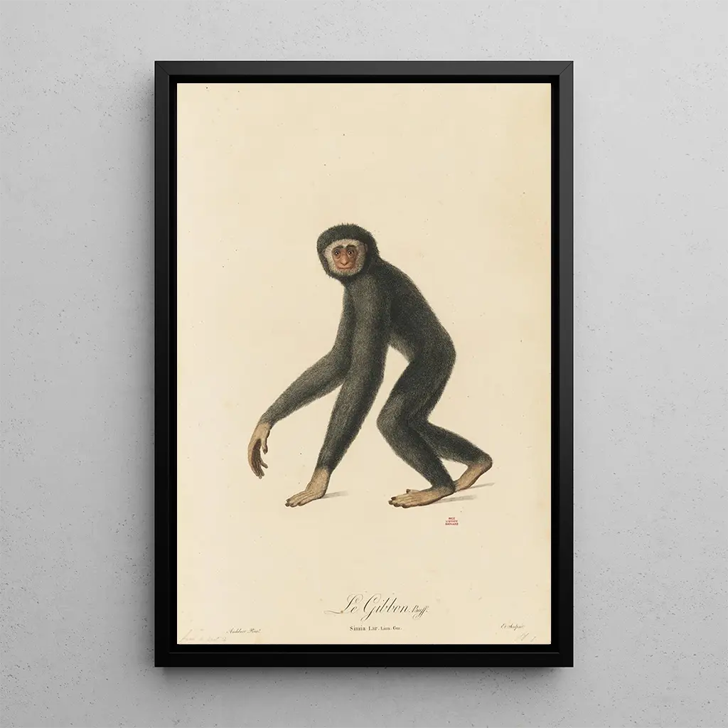 Le Gibbon : une danse entre ombre et lumière Le Gibbon, œuvre emblématique de Jean-Baptiste Audebert, nous plonge dans un univers sauvage où la nature s’exprime avec force et délicatesse. La composition, dominée par des teintes verdoyantes et des touches de lumière, évoque la majesté de cet animal. Audebert, avec sa technique minutieuse, parvient à capturer non seulement l’apparence physique du gibbon, mais aussi son essence, son mouvement gracieux. L’atmosphère de la toile est à la fois vivante et apaisante, invitant le spectateur à s’émerveiller devant la beauté de la faune. Chaque détail, des poils soyeux aux feuillages luxuriants, témoigne d’un amour profond pour la nature. Jean-Baptiste Audebert : un pionnier de l’illustration naturaliste Jean-Baptiste Audebert, actif au début du XIXe siècle, est reconnu pour son rôle essentiel dans le développement de l’illustration naturaliste. Influencé par les découvertes scientifiques de son temps, il a su allier art et science, rendant hommage à la biodiversité à travers ses œuvres. Audebert a voyagé dans des contrées lointaines, observant et documentant des espèces rares, ce qui lui a permis de créer des tableaux d’une précision remarquable. Son travail a non seulement enrichi le monde de l’art, mais a également contribué à la sensibilisation à la protection de la nature, faisant de lui une figure marquante de son époque. Une acquisition décorative aux multiples atouts La reproduction du Gibbon est une pièce décorative qui saura enrichir tout espace, que ce soit un salon, un bureau ou une chambre. Sa qualité d’impression et la fidélité des couleurs font de cette toile un véritable atout esthétique, capable d’élever l’ambiance d’une pièce. En choisissant cette œuvre, vous optez pour une décoration qui allie élégance et originalité, tout en apportant une touche de nature à votre intérieur. L’attrait visuel de cette reproduction ne manquera pas d’éveiller la curiosité et d’engendrer des discussions autour de l’art et de la biodiversité.
