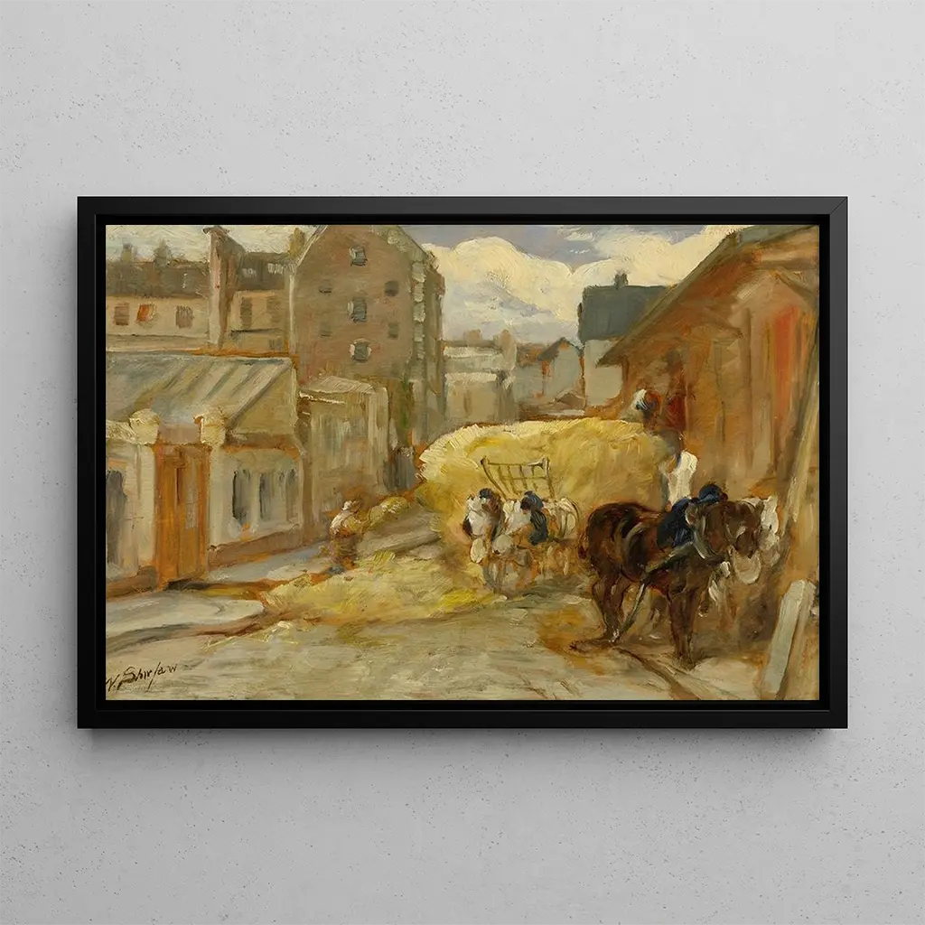 Walter Shirlaw, a painter of Scottish origin, captured the essence of American landscapes in the 19th century. Influenced by European masters, he developed a unique style that combines realism and impressionism. Shirlaw was an active member of his era's artistic scene, participating in numerous exhibitions and contributing to the recognition of American landscape art print. His work, La Charrette de foin, perfectly illustrates his talent for representing the beauty of nature and rural life, while also reflecting the artistic evolution of his time.