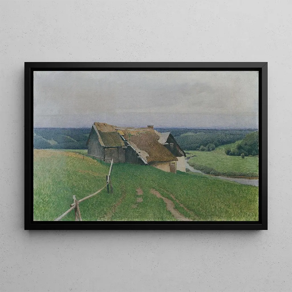The House on the Heights, an iconic work by Ferdinand Brunner, evokes timeless serenity. In this art print, the soft hues of the surrounding nature blend with the delicate architecture of the house, creating a peaceful atmosphere. Shades of green and blue dominate, while touches of golden light add a warm dimension. The composition, carefully balanced, invites the viewer to immerse themselves in this idyllic landscape, where every element seems in perfect harmony. The piece exudes a sense of calm and refuge, as if the house were a sanctuary in the heart of nature.