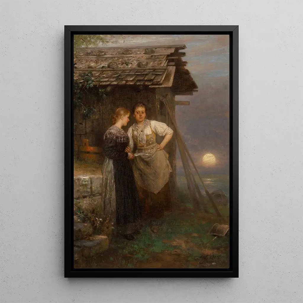 "Art print" de Johann Friedrich Engel est une œuvre qui évoque la délicatesse des sentiments humains. Ce tableau, à la composition intimiste, représente une scène chargée d'émotion, où les protagonistes semblent suspendus dans un moment de partage. Les couleurs pastel, douces et apaisantes, renforcent l'atmosphère romantique de l'œuvre. La technique de l'artiste, qui joue habilement avec la lumière et l'ombre, crée une profondeur qui attire le regard et invite à la contemplation des détails. Cette toile est une véritable célébration de l'amour sous toutes ses formes, capturant l'essence même de la passion.
