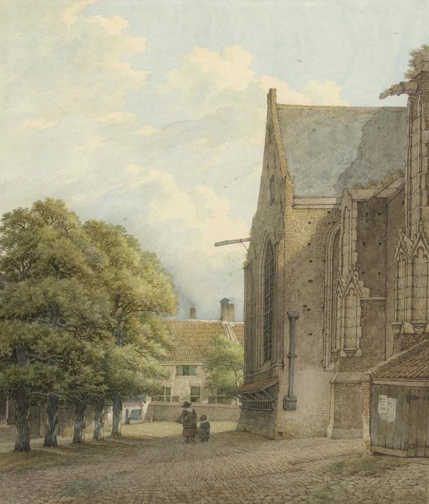 Daniël Kerkhoff's style is characterized by a realistic approach, where every detail is carefully observed and rendered with precision. In "Rhenen Church," the artist uses a subtle color palette, playing with shades to evoke variations in light throughout the day. The delicate shadows and luminous reflections on the church's stones create an almost poetic atmosphere, where time seems suspended. This work stands out for its ability to evoke a sense of serenity and contemplation, while highlighting the majesty of religious architecture. The composition is balanced, with each element thoughtfully placed to guide the viewer's eye across the painting, revealing the scene's depth.