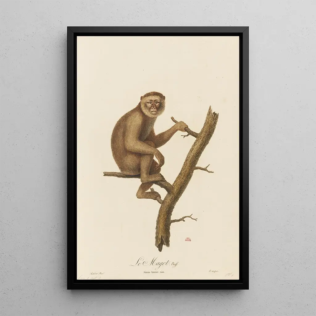 The Magot, an iconic art print by Jean-Baptiste Audebert, immerses us in a universe where nature and art meet with striking delicacy. This reproduction reveals a palette of vibrant colors, where shades of green and blue blend harmoniously, evoking an atmosphere that is both serene and mysterious. The artist's technique, combining precision and sensitivity, brings to life a fascinating subject, capturing the very essence of exotic fauna. Through this canvas, Audebert invites us to contemplate the beauty of nature while transporting us to distant lands.