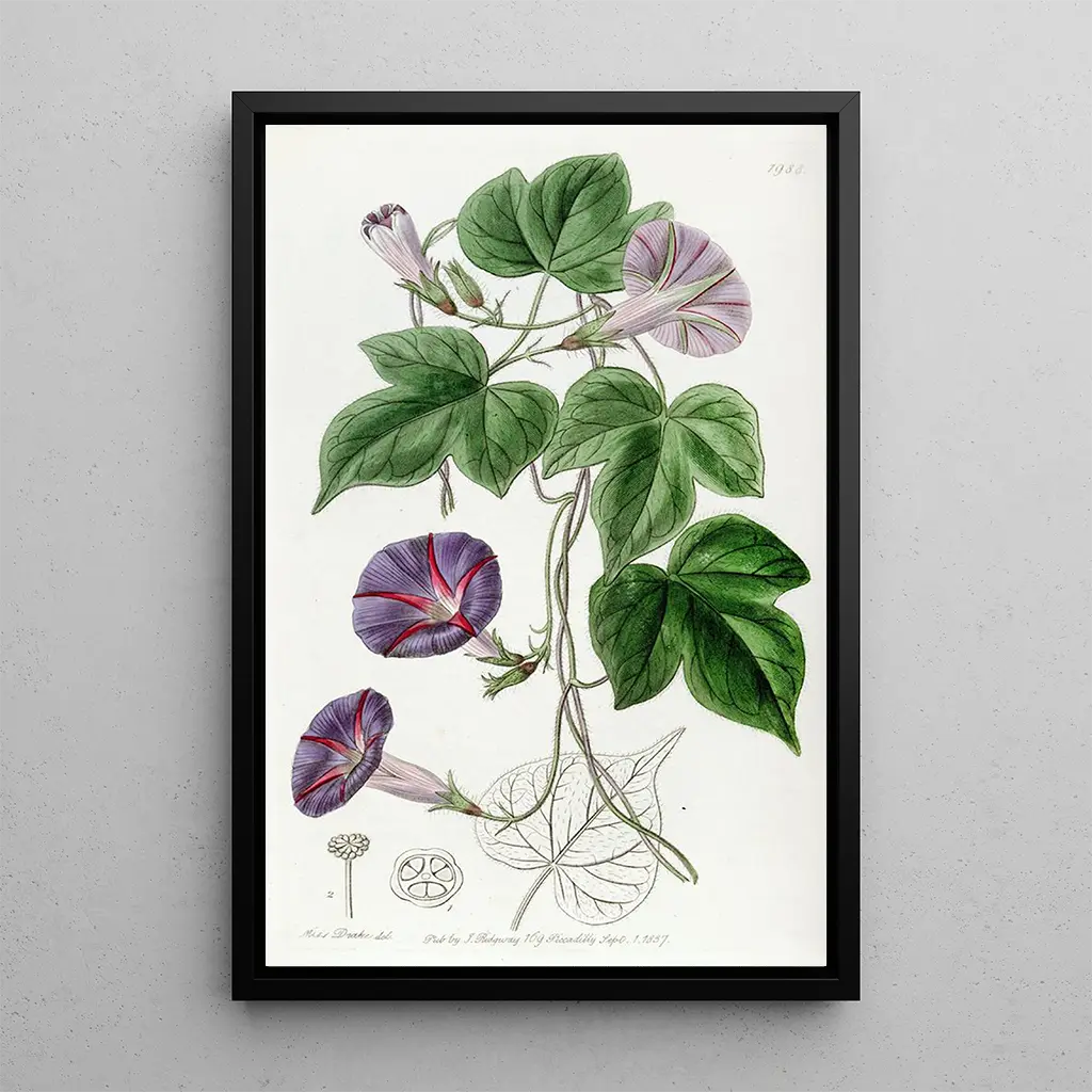 In this vibrant artwork, Sydenham Edwards captures the delicate beauty of the large three-lobed bindweed. The shades of green and purple intertwine, creating an atmosphere that is both soothing and dynamic. The watercolor technique allows for a fluidity of colors, while the meticulous details of the leaves and flowers reveal a deep respect for nature. Each petal seems to come to life, inviting the viewer to immerse themselves in this floral universe. This art print of the large three-lobed bindweed is much more than a simple representation; it evokes an intimate connection with the plant world.