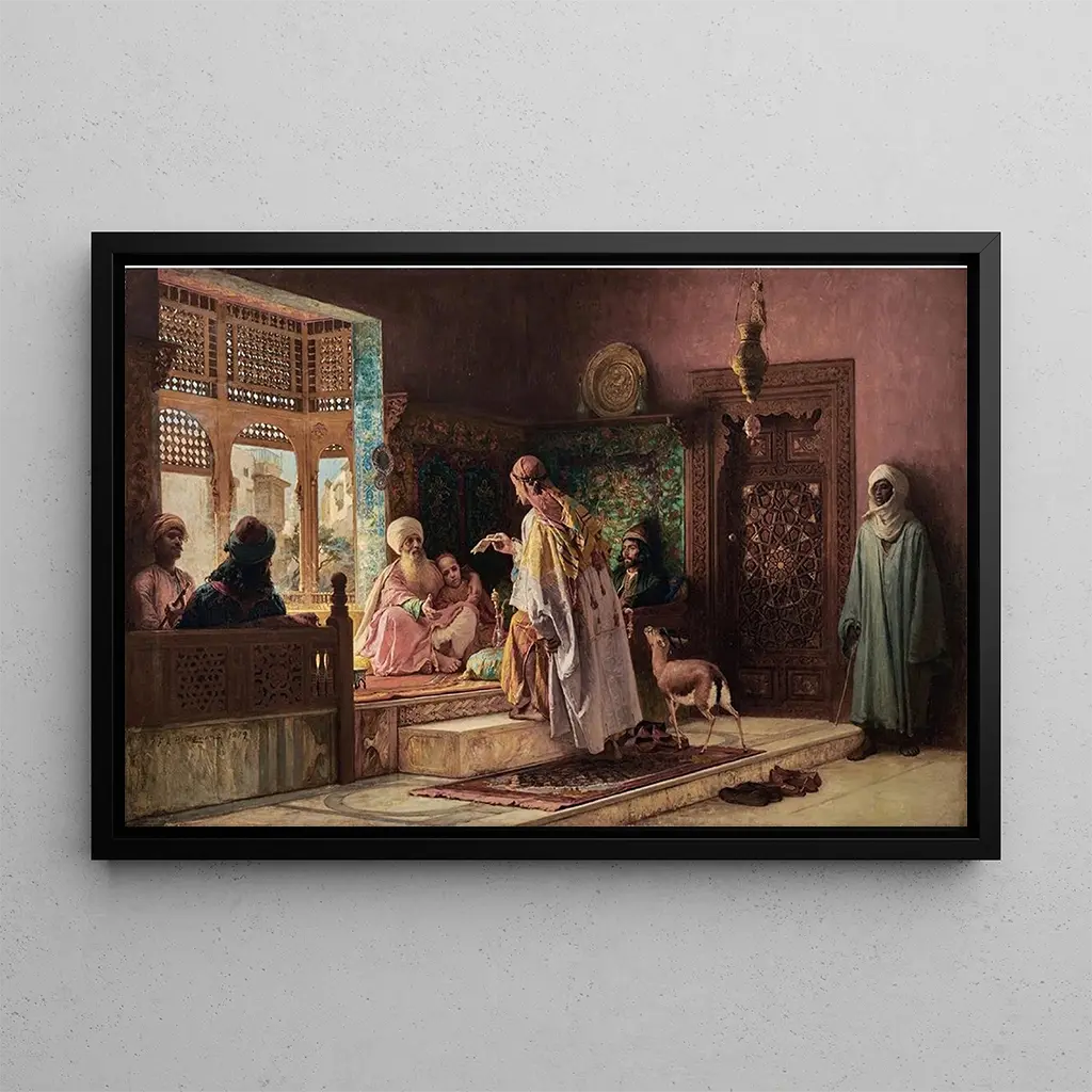 Frederick Arthur Bridgman, active in the late 19th century, is renowned for his works inspired by his travels in the Orient. Influenced by realism and romanticism, he captured the essence of the cultures he encountered. His paintings, often imbued with light and warmth, testify to his admiration for the beauty of exotic landscapes and characters. Bridgman established himself in the art world through his unique style, which combines refined technique with deep sensitivity. "The Messenger" fits perfectly within this tradition, showcasing his talent for depicting scenes full of meaning and emotion.
