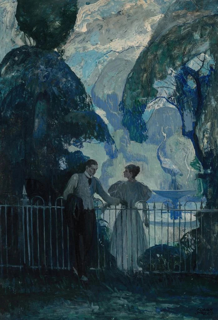Frank Street, artiste américain du début du XXe siècle, est reconnu pour sa capacité à capturer la beauté des paysages ruraux. Influencé par le mouvement impressionniste, il a su développer un style unique qui allie précision et sensibilité. Sa carrière s'étend sur plusieurs décennies, durant lesquelles il a exploré divers thèmes, mais toujours avec un attachement profond à la nature. "Le Midlandais" s'inscrit dans une période où l'art américain commence à se démarquer sur la scène internationale, et Street, par son approche délicate, contribue à cette évolution. Ses œuvres sont aujourd'hui célébrées pour leur authenticité et leur capacité à évoquer des émotions profondes.