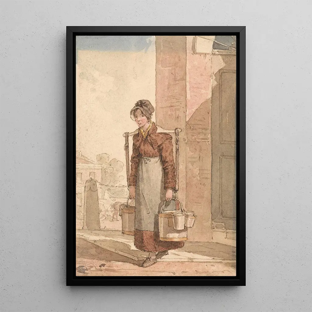 A Milkmaid: a serene scene of everyday life In this art print of the work "A Milkmaid," John Augustus Atkinson captures a moment of daily life with remarkable delicacy. The composition highlights a young woman, focused on her task, surrounded by elements that evoke simplicity and the beauty of everyday life. The soft, natural colors, ranging from cream tones to shades of green, create a calming atmosphere. The watercolor technique, with its gentle gradients and transparency, allows the light to be rendered subtly, emphasizing the scene's tranquility. This art print invites contemplation, immersing us in a suspended moment in time. John Augustus Atkinson: a witness to Victorian life John Augustus Atkinson, active in the 19th century, is a British artist whose works depict the daily life of his era. Influenced by the Romantic movement, he specialized in genre scenes, capturing simple yet meaningful moments. Atkinson was able to translate the essence of Victorian life through his art, highlighting ordinary characters in familiar settings. His style, characterized by meticulous attention to detail and a palette of soft colors, reflects a sensitivity to the beauty of everyday life. This art print of "A Milkmaid" demonstrates his talent for immortalizing moments of life with great authenticity. A decorative acquisition with multiple assets The reproduction of "A Milkmaid" is a decorative piece that fits perfectly into various living spaces, whether a living room, an office, or a bedroom. Its print quality and fidelity to the original work make it an ideal choice for those wishing to add a touch of elegance to their interior. With its serene atmosphere, this art print invites relaxation and contemplation, creating a warm and welcoming environment. By adding this art print to your decor, you do not just beautify your space, but also pay tribute to art and the beauty of simple moments in life.