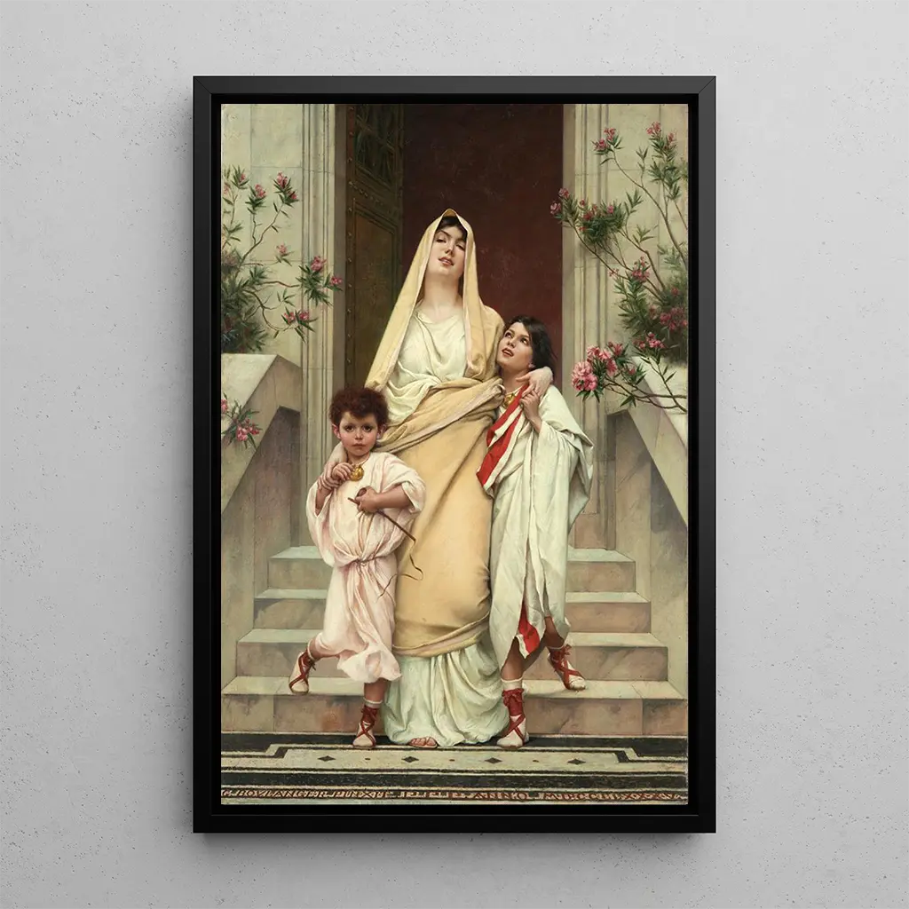 "La mère des Gracques" by Gustave Boulanger is a poignant art print that highlights the maternal figure within a rich historical context. The composition, centered on a woman with a determined gaze, evokes strength and resilience. The earthy colors and meticulous details of the historical clothing immerse the viewer in ancient Rome, while the mother's expression conveys palpable emotion. This art print invites reflection on the role of women in history, while celebrating their silent yet powerful influence.