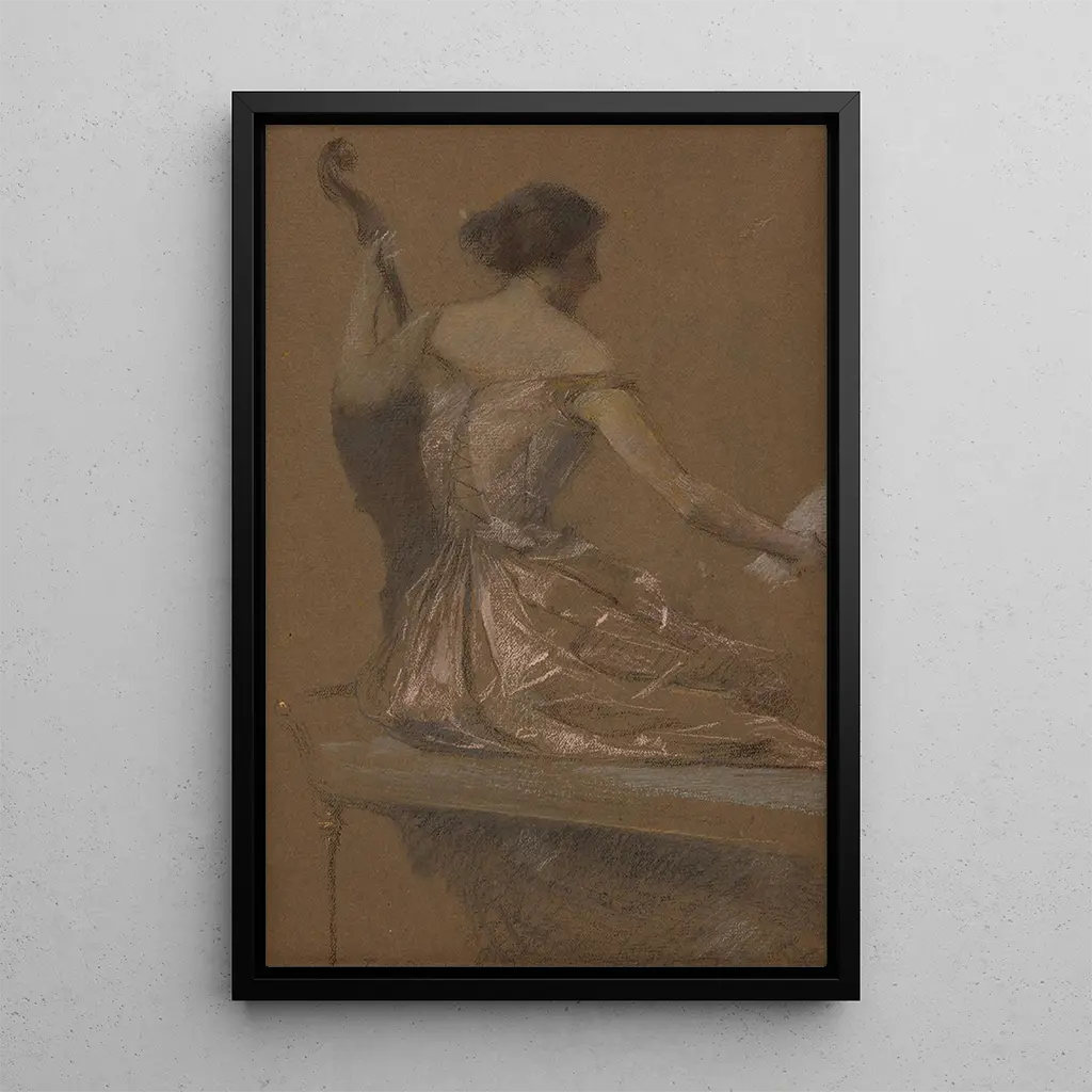 In "Le Musicien", Thomas Wilmer Dewing transports us to a universe where music and beauty meet. This art print depicts a man playing an instrument, surrounded by a soft and melodious atmosphere. The warm colors and delicate shades create an ambiance of calm and harmony. Dewing's technique, characterized by fluid brushstrokes and meticulous attention to detail, brings this scene to life, evoking the passion and emotion that music can inspire. Each element of the composition, from the musician's expressions to the play of light, contributes to an immersive visual experience.
