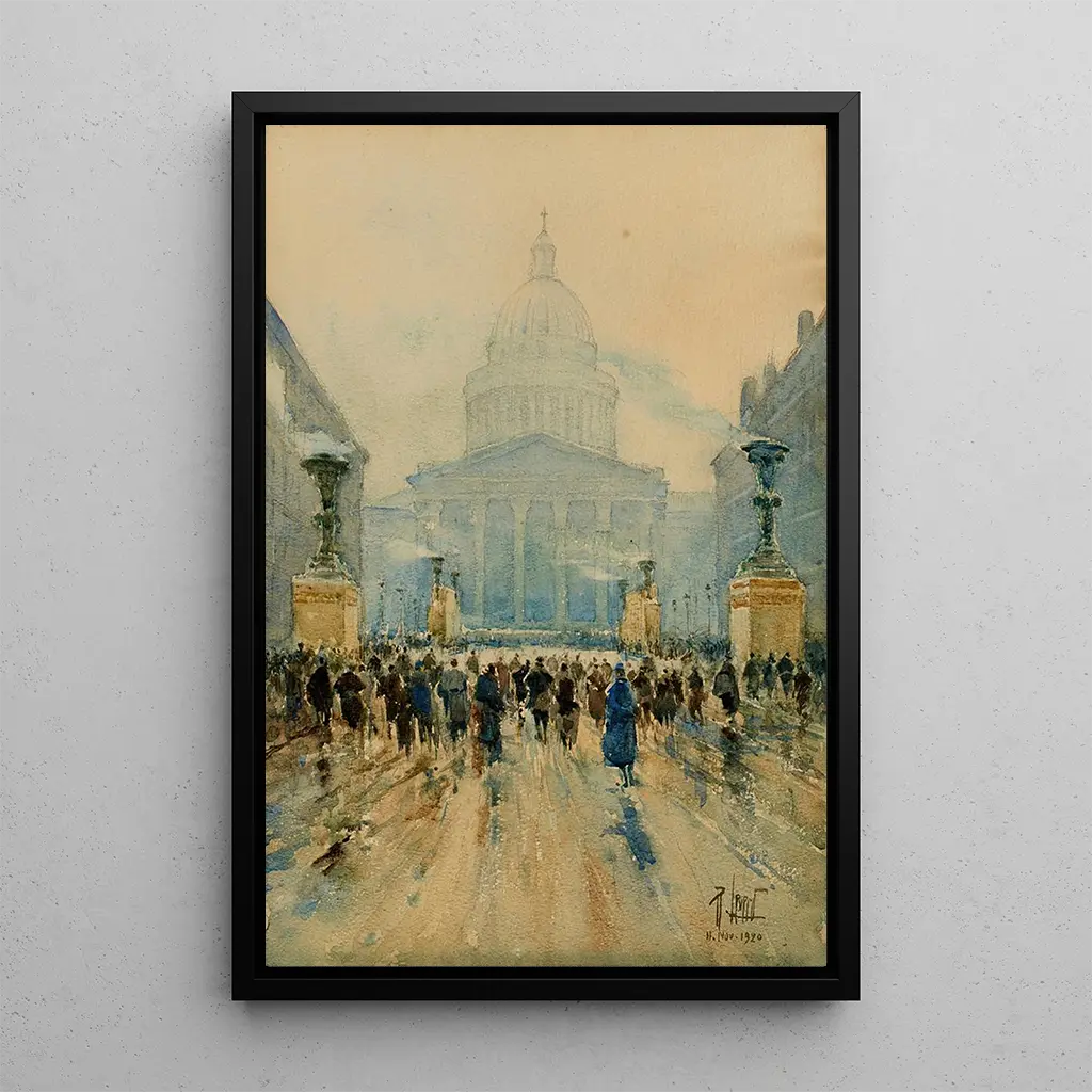 La reproduction de "Le Panthéon le 11 novembre 1920" constitue un ajout précieux à votre décoration intérieure. Que ce soit dans un bureau, un salon ou un espace de méditation, ce tableau évoque une atmosphère de réflexion et de respect. Sa qualité d'impression assure une fidélité remarquable aux détails et aux couleurs de l'œuvre originale, permettant de ressentir toute la profondeur de la scène. L'attrait esthétique de cette toile réside dans sa capacité à inspirer la contemplation et à enrichir votre espace de vie, faisant de cette reproduction un choix idéal pour ceux qui apprécient l'art chargé d'histoire.