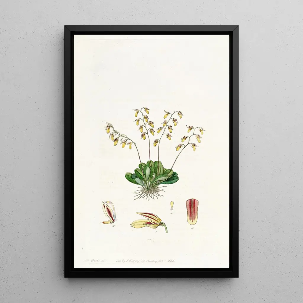 Sydenham Edwards, active in the early 19th century, is recognized as one of the most influential artists in the field of botanical illustration. Trained at the Royal Academy, he mastered the blend of art and science, contributing to the documentation of exotic plants of his time. His works, often published in botanical books, reflect a deep respect for nature and a desire to introduce it to the general public. The Groby Pleurothallis fits within this context, reflecting the enthusiasm for botanical discoveries during the Victorian era and the importance of species preservation.