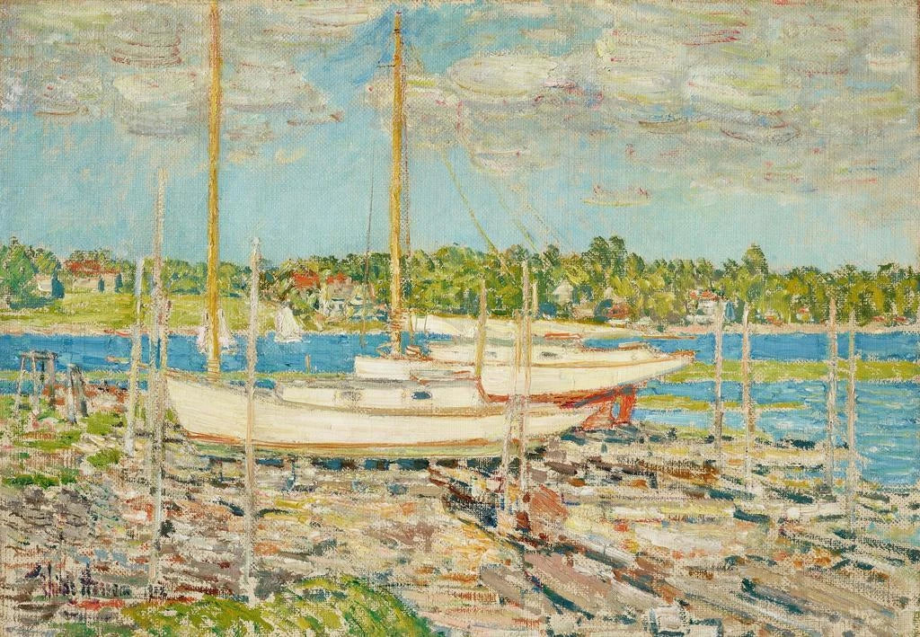 Childe Hassam, born in 1859, is considered one of the pioneers of American Impressionism. Influenced by European masters, he developed a unique style characterized by vivid colors and luminous compositions. Active in the late 19th and early 20th centuries, Hassam often depicted scenes of everyday life, from urban landscapes to sunlit beaches. The Port, created at a time when American art was seeking to establish itself on the global stage, demonstrates his skill in capturing the light and atmosphere of a place.