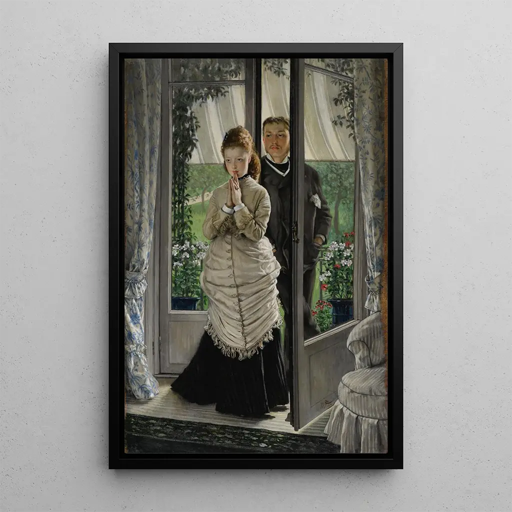 James Tissot, peintre français du XIXe siècle, est reconnu pour ses œuvres qui explorent la vie bourgeoise et les relations humaines. Influencé par le mouvement impressionniste, il développe un style unique qui allie précision et sensibilité. Tissot a passé une partie de sa carrière à Londres, où il a été marqué par la culture britannique et les mœurs de la société victorienne. Son approche narrative et son attention aux détails font de lui un artiste incontournable de son époque, dont les œuvres continuent d’inspirer et de fasciner. "La Proposition" s'inscrit parfaitement dans cette tradition, illustrant les complexités des interactions humaines.