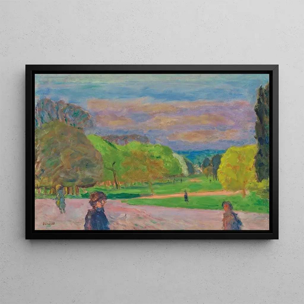 The Public Garden: A Vibrant Canvas of Life and Color The Public Garden by Pierre Bonnard is a piece that invites daydreaming and escapism. The vivid colors and flowing shapes blend to create an atmosphere of serenity and joy. Light plays a crucial role, illuminating the foliage and the faces of the characters who seem to flourish within this lush setting. Bonnard's technique, characterized by delicate brushstrokes and a rich palette, brings this bucolic scene to life, where every detail contributes to a sense of simple happiness. This art print not only evokes the beauty of nature but also the intimacy of outdoor shared moments. Pierre Bonnard: A Master of Fauvism and Intimacy Pierre Bonnard, an iconic figure of the Fauvist movement, mastered capturing light and human emotions through his works. Born in 1867, he was influenced by artists such as Édouard Vuillard and Henri Matisse, shaping his unique style. His creative period mainly spans from the early 20th century until his death in 1947, during which he explored themes of everyday life, intimacy, and nature. The Public Garden is a perfect example of his approach, blending elements of modernity with an almost nostalgic sensitivity, reflecting the importance of nature in urban life. A Decorative Piece with Multiple Benefits The art print of the Public Garden is a decorative item that will enhance any space, whether a living room, office, or bedroom. Its printing quality guarantees remarkable fidelity to the colors and details of the original work, allowing you to fully enjoy Bonnard's aesthetic. By incorporating this art print into your decor, you add a touch of freshness and elegance while creating a calming atmosphere. This piece is not only an aesthetic choice but also a tribute to art, sure to appeal to art lovers and decorating enthusiasts.